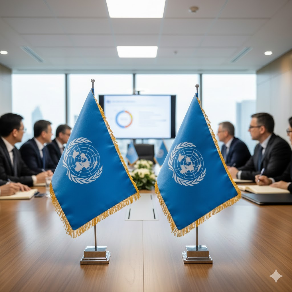 유엔기후변화협약 2025년 10월 25일 0 product MOU 탁상용깃발 탁상용단체기 탁상용만국기 탁상용단체기size:30*20cm소재:폴리에스텔(노랑수술)깃대:스텐깃대40cm받침대:크롬1단