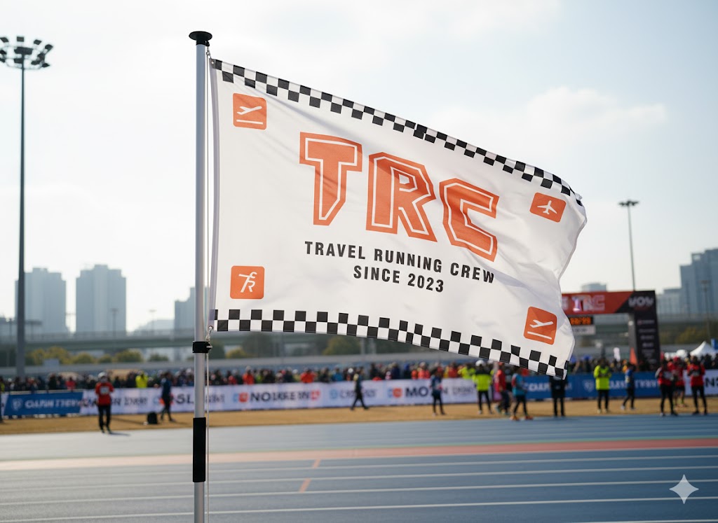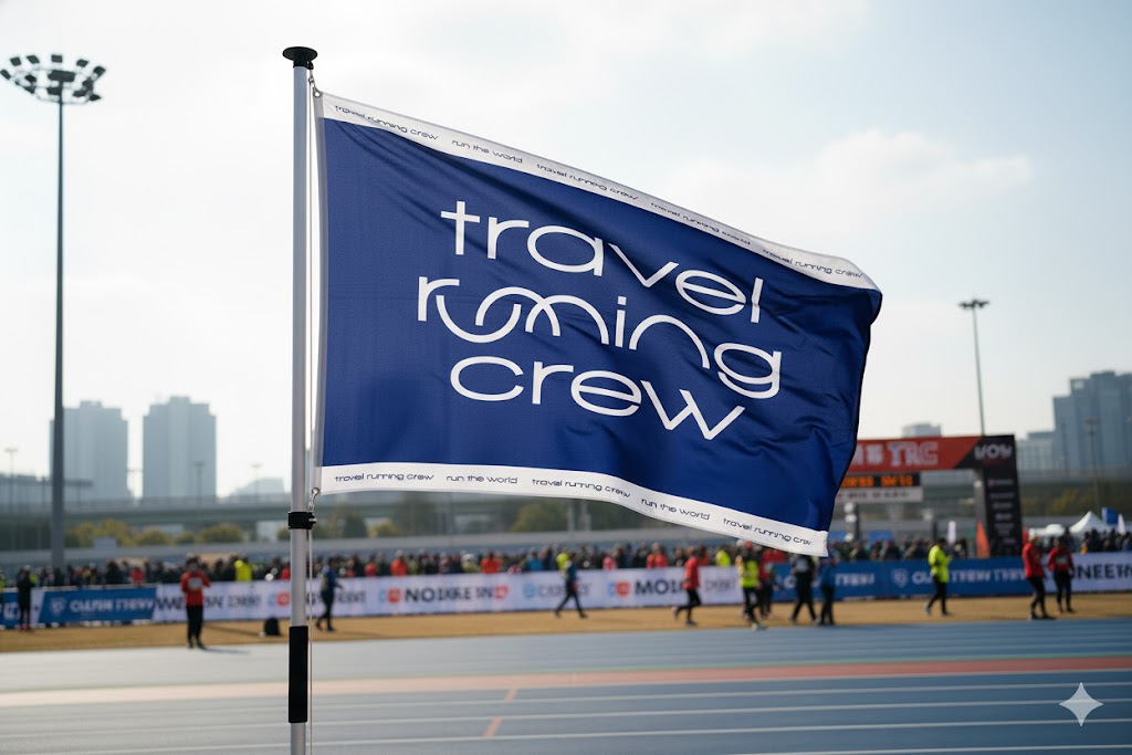 러닝크루깃발size:225*150cm소재:폴리에스텔깃대:알루미늄3단깃대300cm